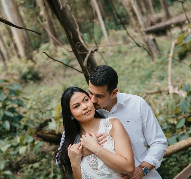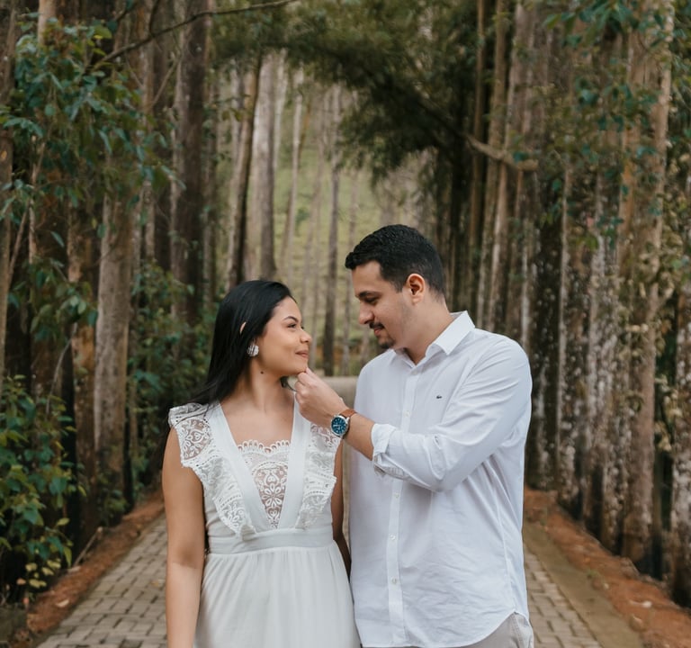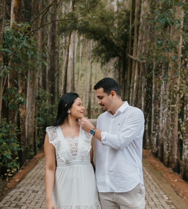 Oferecemos ensaios românticos em locais ao ar livre, destacando a conexão entre os parceiros.